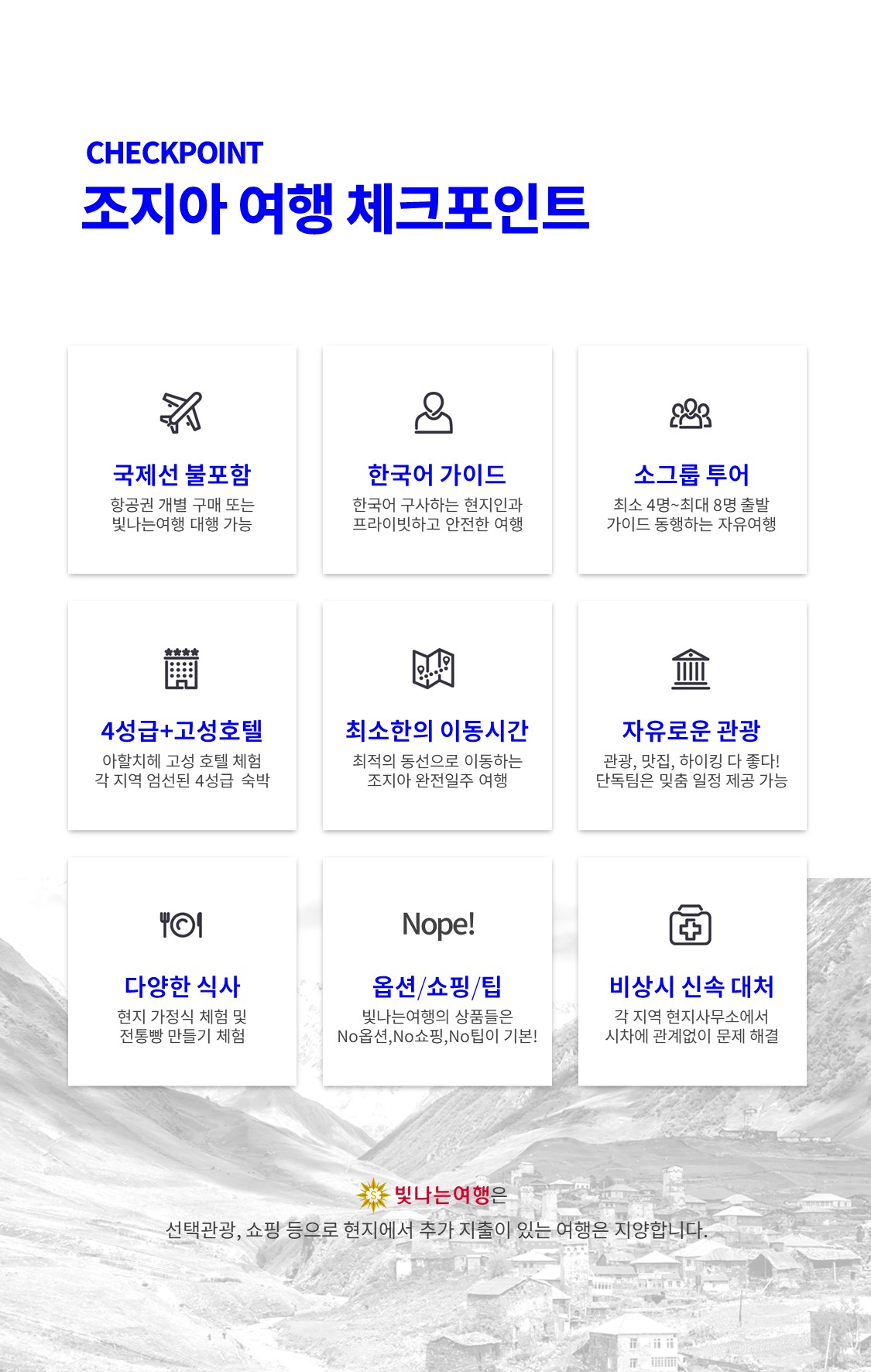 | 6. 여행 출발/추억 만들기공항 미팅 후 여행 출발, 여행 후에는 생생한 후기로 추억을 나누세요.