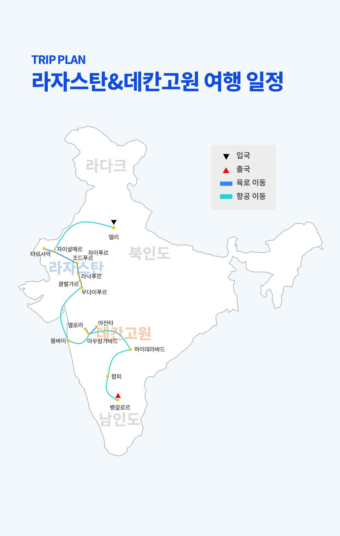 🔹인도 국내선 6회 🔹4~5성급 호텔 및 궁전호텔 🔹전 일정 식사 🔹일정상 포함된 투어 및 전용차량 🔹한국어 가이드 동행(15인 이상 출발시 한국인 인솔자 동행) 🔹1억원 여행자보험(해외출발 고객은 불포함) 🔹여권 커버, 네임택, 여행용 파우치 |